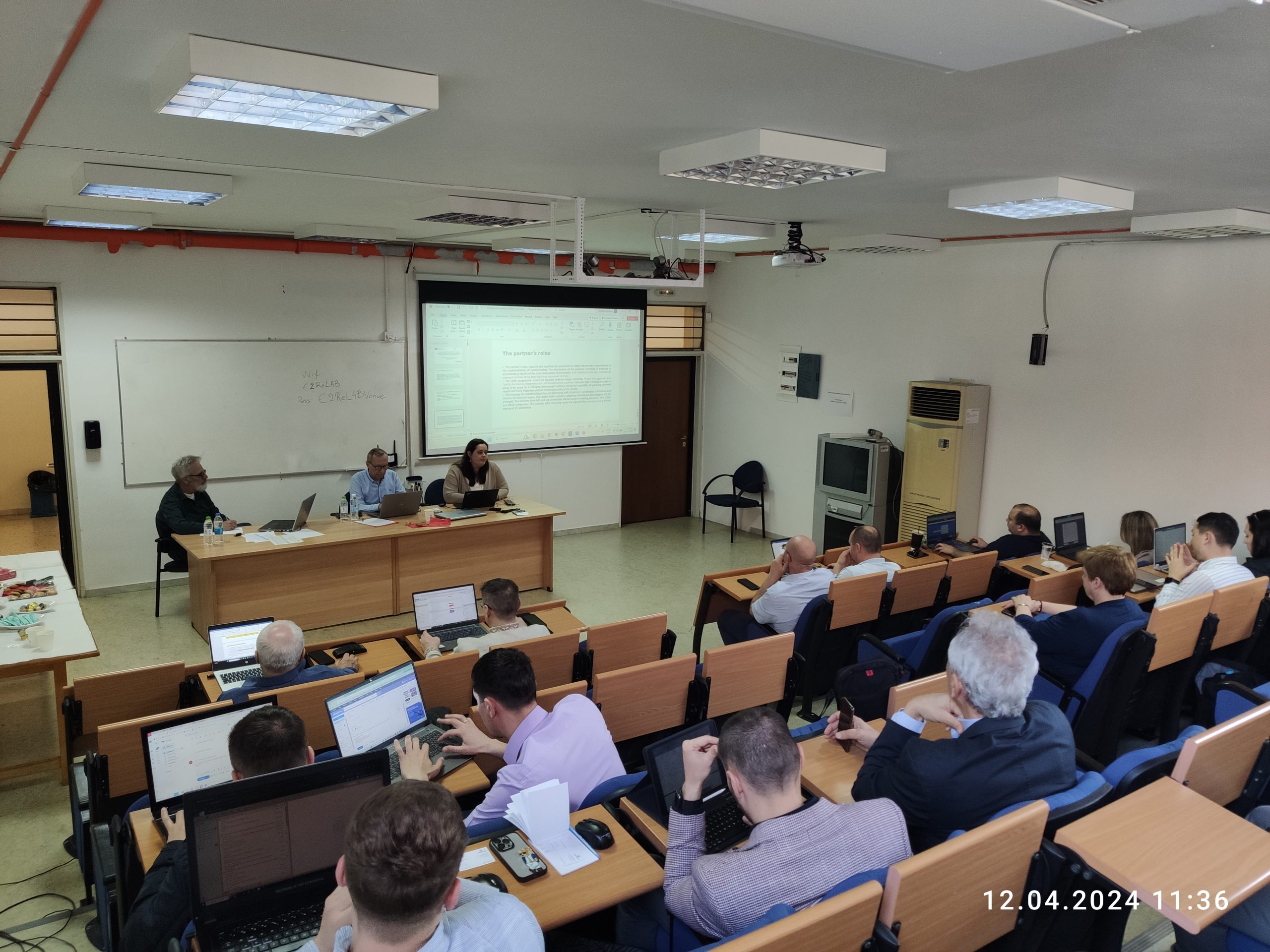 Sesiunile de lucru au debutat cu deschiderea oficială a întâlnirii de către coordonatorul proiectului de la Universitatea Tehnică din Riga (RTU), urmată de prezentarea participanților și un cuvânt de bun venit din partea Prof. M. Tzamtzi, Vicepreședinte al Departamentului de Tehnologii Industriale Digitale de la NKUA, Grecia.