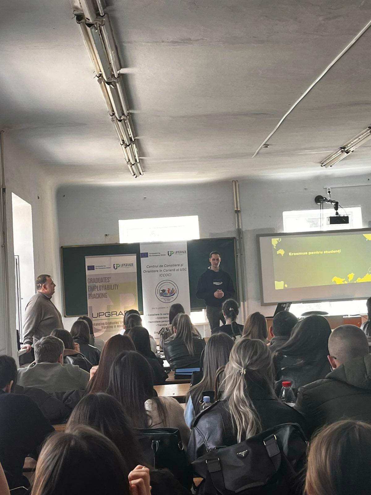 Pe 9 martie 2026, în cadrul Universității de Stat ‘Bogdan Petriceicu Hasdeu» din Cahul, echipa proiectului UPGRADE – Irina Todos, dr., conf. univ. și Maxim Ilicciev, dr., lector univ. – a organizat atelierul „Mindfulness și managementul situațiilor de risc”, la care au participat 81 de studenți din anul I.