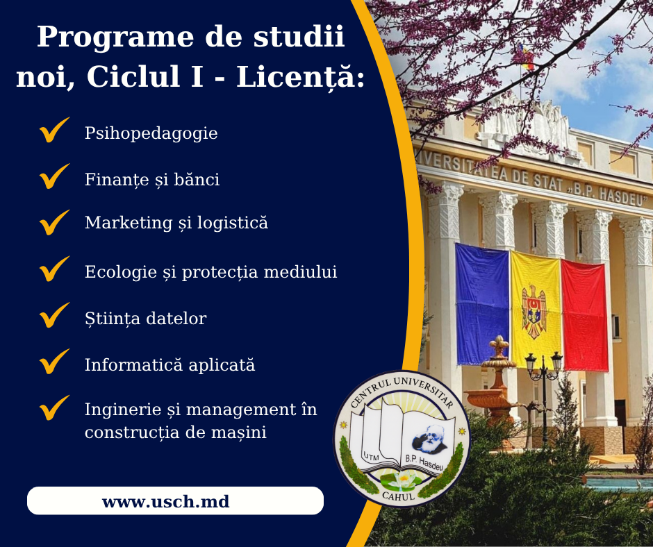 Centrul Universitar „Bogdan Petriceicu Hasdeu” din Cahul își extinde oferta educațională și vine în întâmpinarea tinerilor cu programe de licență actuale, adaptate cerințelor pieței muncii.